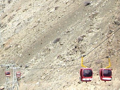 へのケーブルキャビン観光をしました。持参の高度計によると、乗り口は標高1900m、